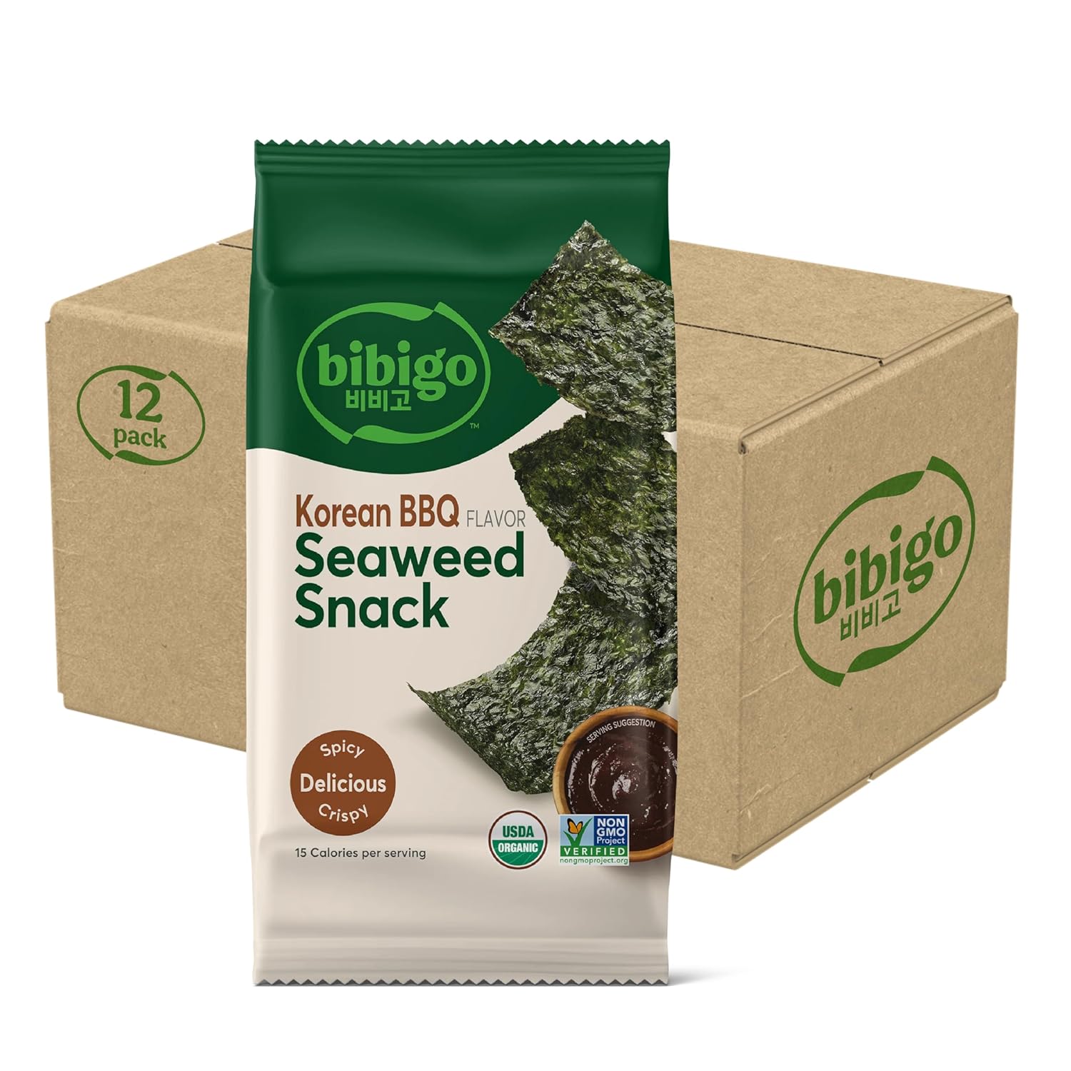 Bibigo Seaweed Snack, Sesame Flavor, Non GMO, Gluten Free, 0.35 Ounces (Pack of 12)