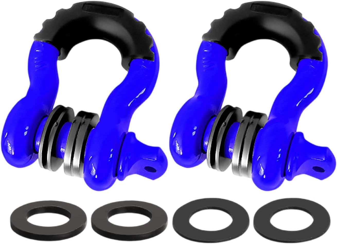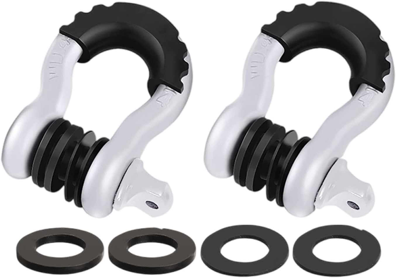 Shackles Products, D-Ring Shackle Provides Superior Towing Power For Vehicle Recovery or Heavy-Duty Towing Needs. Made of Ultra-Strong Drop-Forged Steel. And Is Galvanize & Powder-Coated For Rugged Durability and Lasting Performance. Ideal Off-Road Versatility For Use With Recovery Tow Snatch Straps, Snatch Blocks, Tree Savers, And More. Universal Design and Great For ATV, UTV, Trucks, Trailers, and Sport-Utility Vehicles. With This Shackle, Easy To Install, Reliable To Use.Included: D-Ring Mega Shackle + Isolator + Washers KitTop Materials: Ultra-Strong Drop Forged SteelBreaking Strength Limit : 19Ton (41,887 Lbs Capacity)COMPLETE RECOVERY SHACKLE SET:*Easy To Install, Reliable To Use With Up To 41,887 Lbs GTW*Made From High-Quality, Heavy Duty Drop Forged Steel For Increased Durability*Double Protected From Rust and Corrosion By Galvanize & Powder Coat Plating*Added Washer Kits And Isolators For Noise Reduction and Protecting The Bumper While Having The Towing D Ring Mounted
