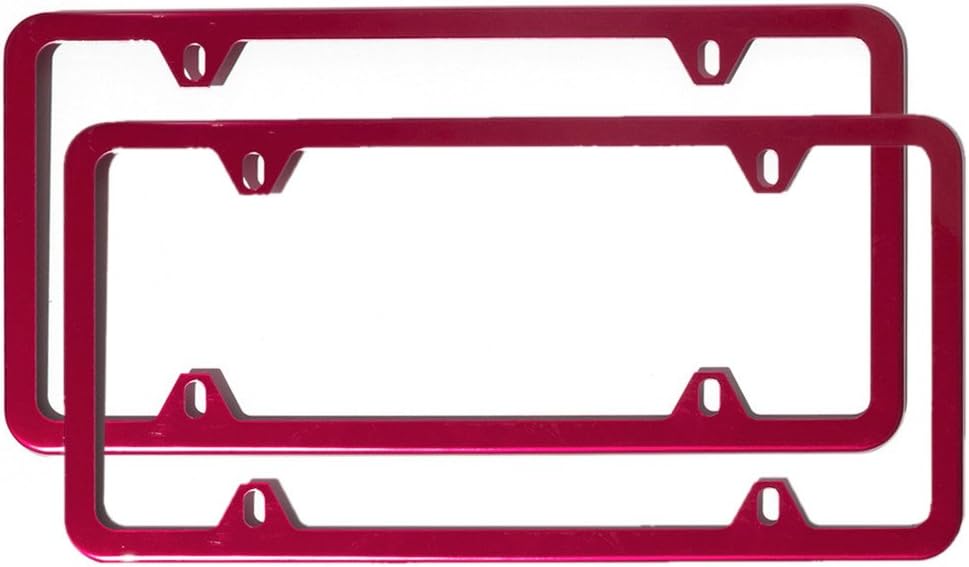 The package comes with two frames. This slim style license plate frame is made of high quality stainless steel. It will never rust. Powder coating on the whole frame and back. There are two bracket holders on the of the frame to secure your license plate in place. Special design that won't cover any of your plate's information, such as registration stickers. All of our frames are designed for the U.S.and Canada market, so they are universal fit for all U.S. and Canada domestic license plate.